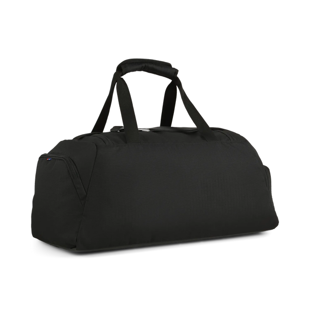 The BMW MMS sports bag combines style and functionality with a clean design and an easily accessible main compartment. It includes an external shoe compartment, a zippered pocket on the side, and an additional zippered pocket inside. The premium silicone BMW M Motorsport logo and the embroidered Puma Cat logo on the front enhance its appeal. Featuring a contrasting woven BMW M label, this bag is perfect for carrying your essentials in style.