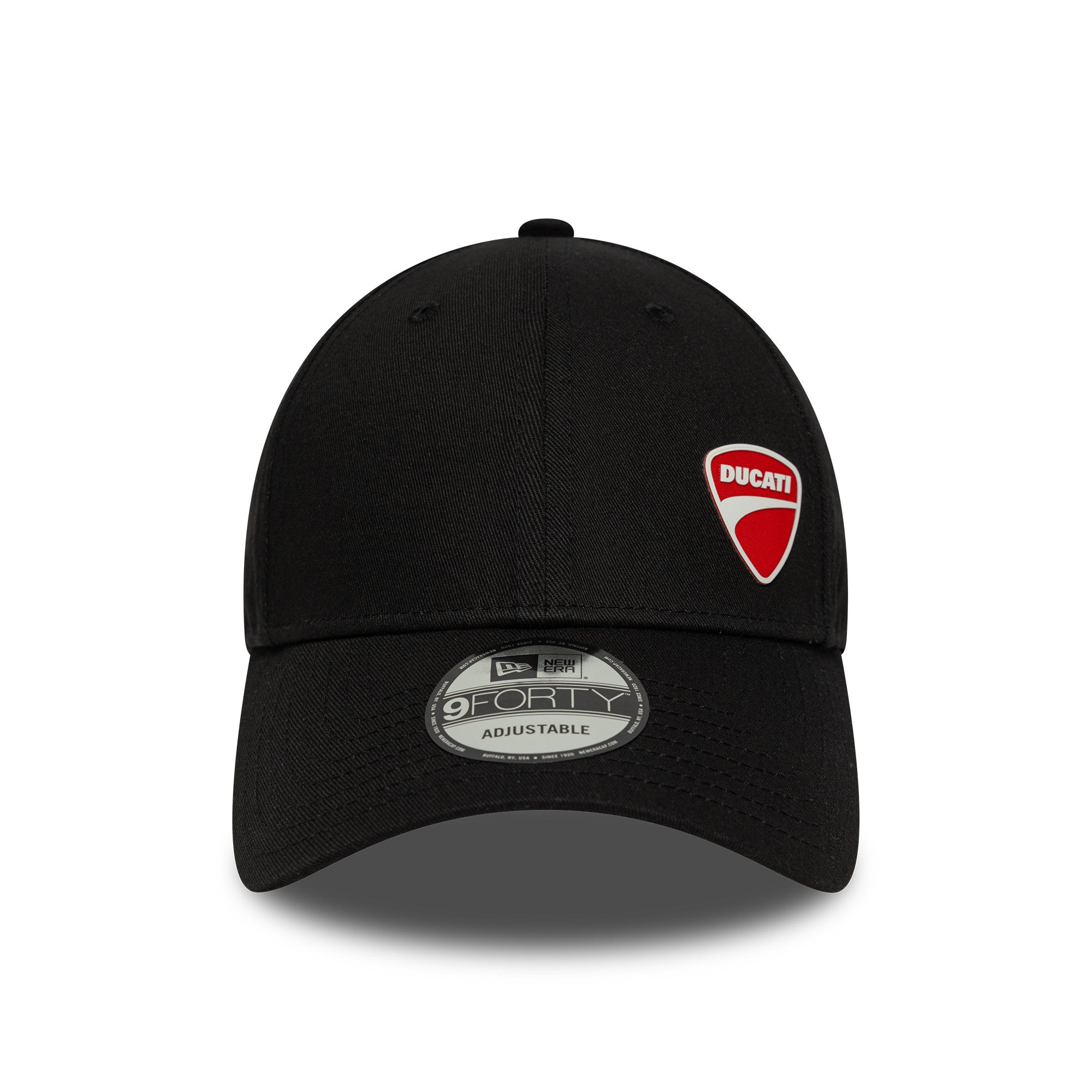 Gorra deportiva y urbana que combina la legendaria herencia de carreras de Ducati con la icónica silueta 9FORTY de New Era. La gorra negra presenta una corona estructurada de seis paneles, un ala precurvada y una correa trasera ajustable para un ajuste seguro y personalizable. Un branding sutil y ojales transpirables ofrecen un aspecto limpio y moderno, perfecto para paseos, entrenamientos o uso diario.