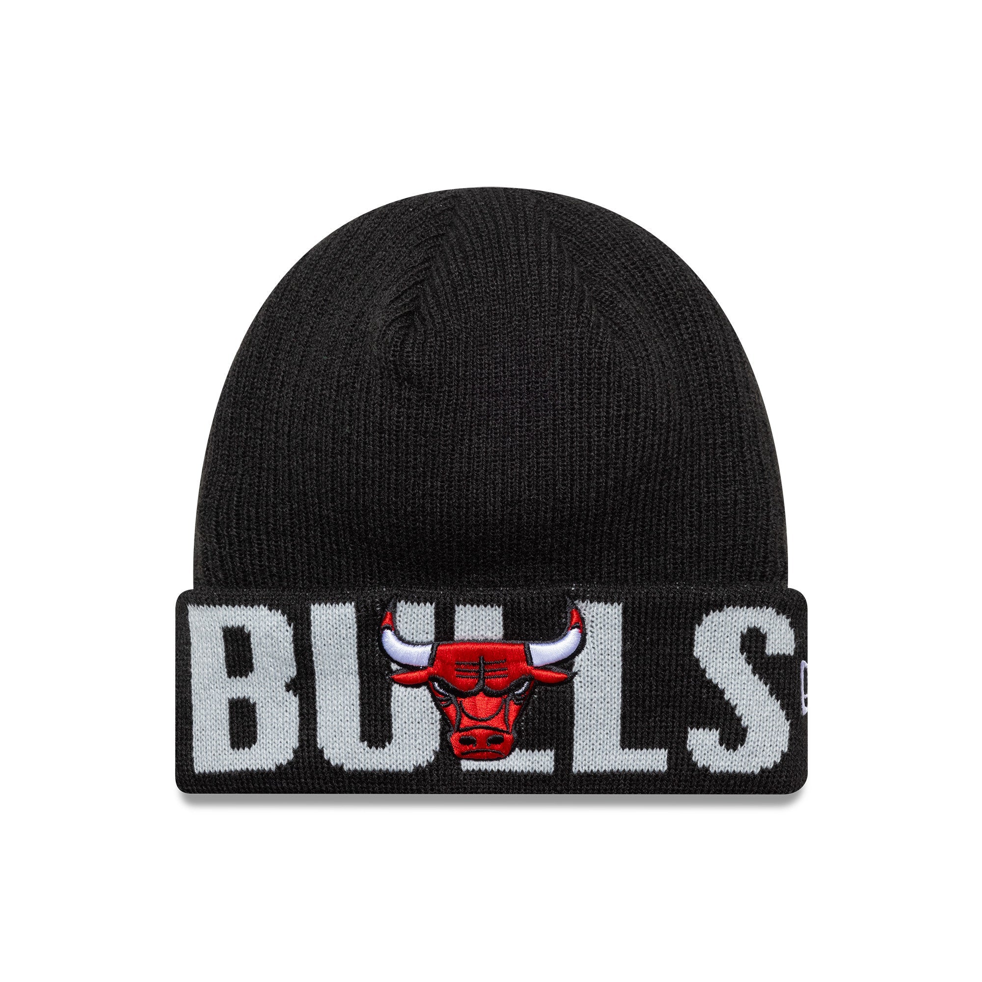 Gorro de punto de los Chicago Bulls de New Era – Negro con logotipo wordmark