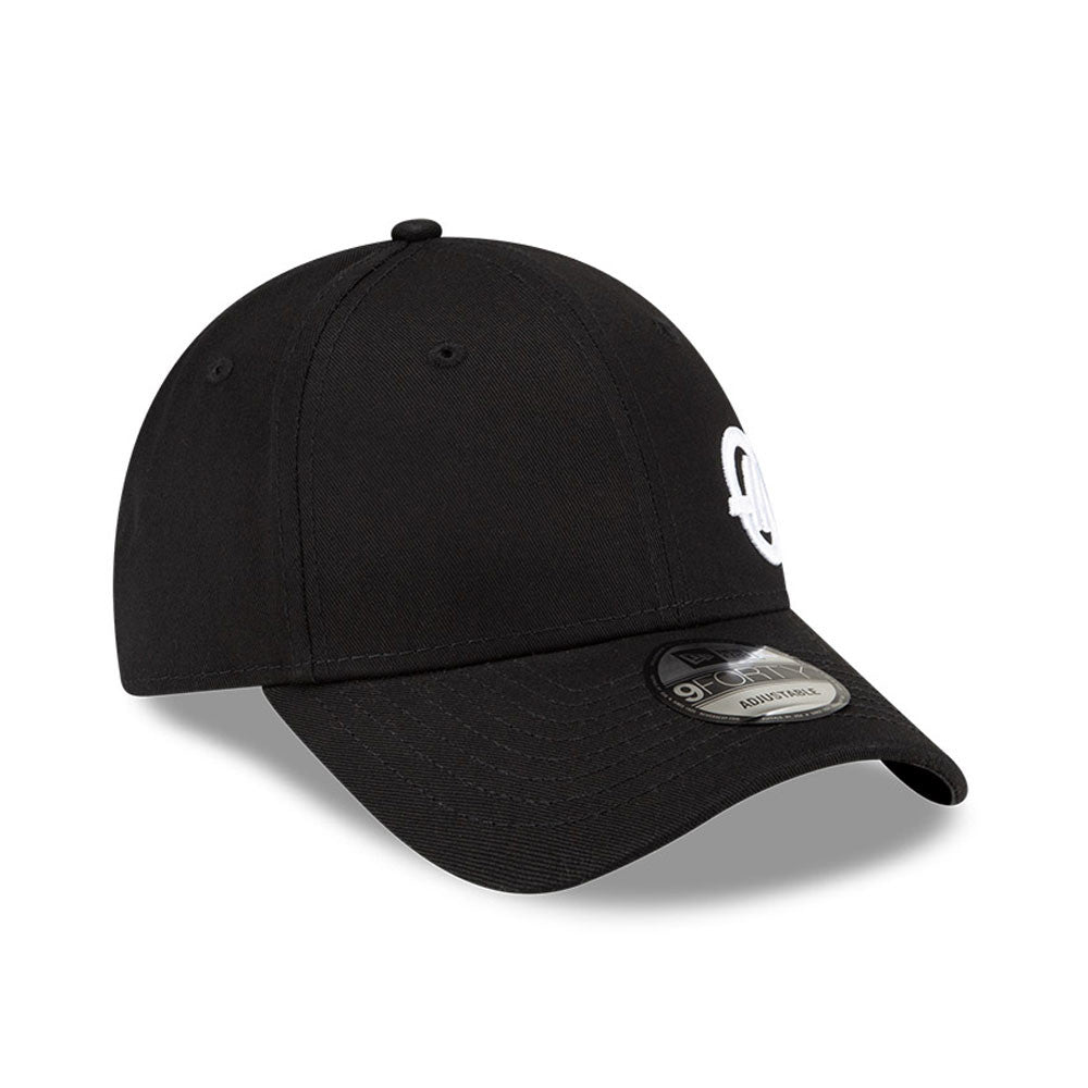 Una gorra negra y elegante de New Era 9FORTY con una corona estructurada y visera curva. Esta gorra ajustable ofrece un ajuste seguro y universal con una correa trasera y ojales transpirables para comodidad durante todo el día. Su estilo minimalista e impecable la hace perfecta para uso casual, deporte y estilo urbano diario.