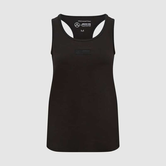 In our online store dedicated to Formula 1 fans, we now introduce the Mercedes top, sure to delight motorsport enthusiasts! This women's racerback top is available in the official Mercedes team colors, black, making it a must-have for any true fan's wardrobe.