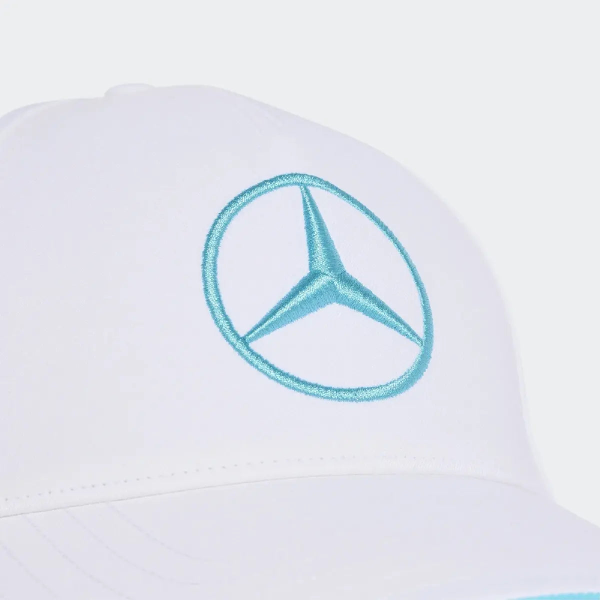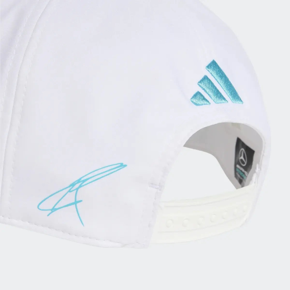 Gorra Mercedes, equipo, adidas, George Russell, blanca