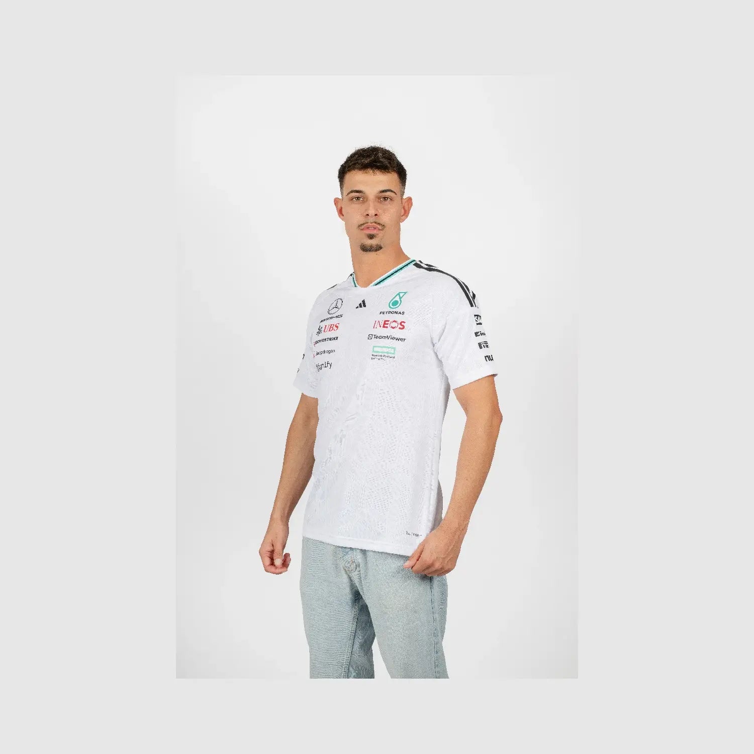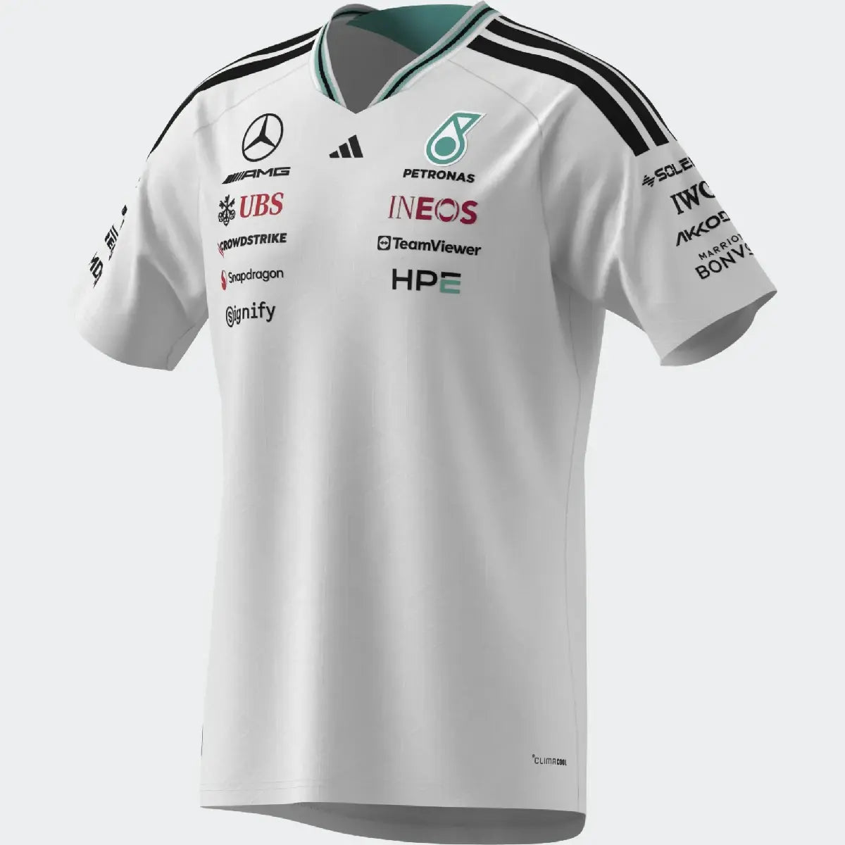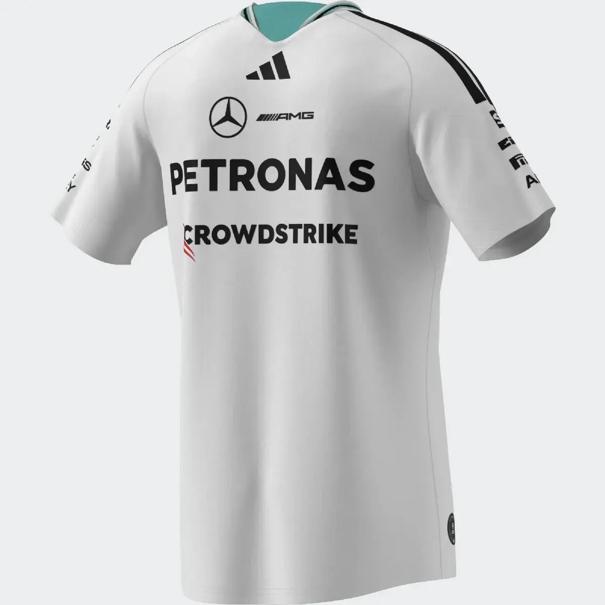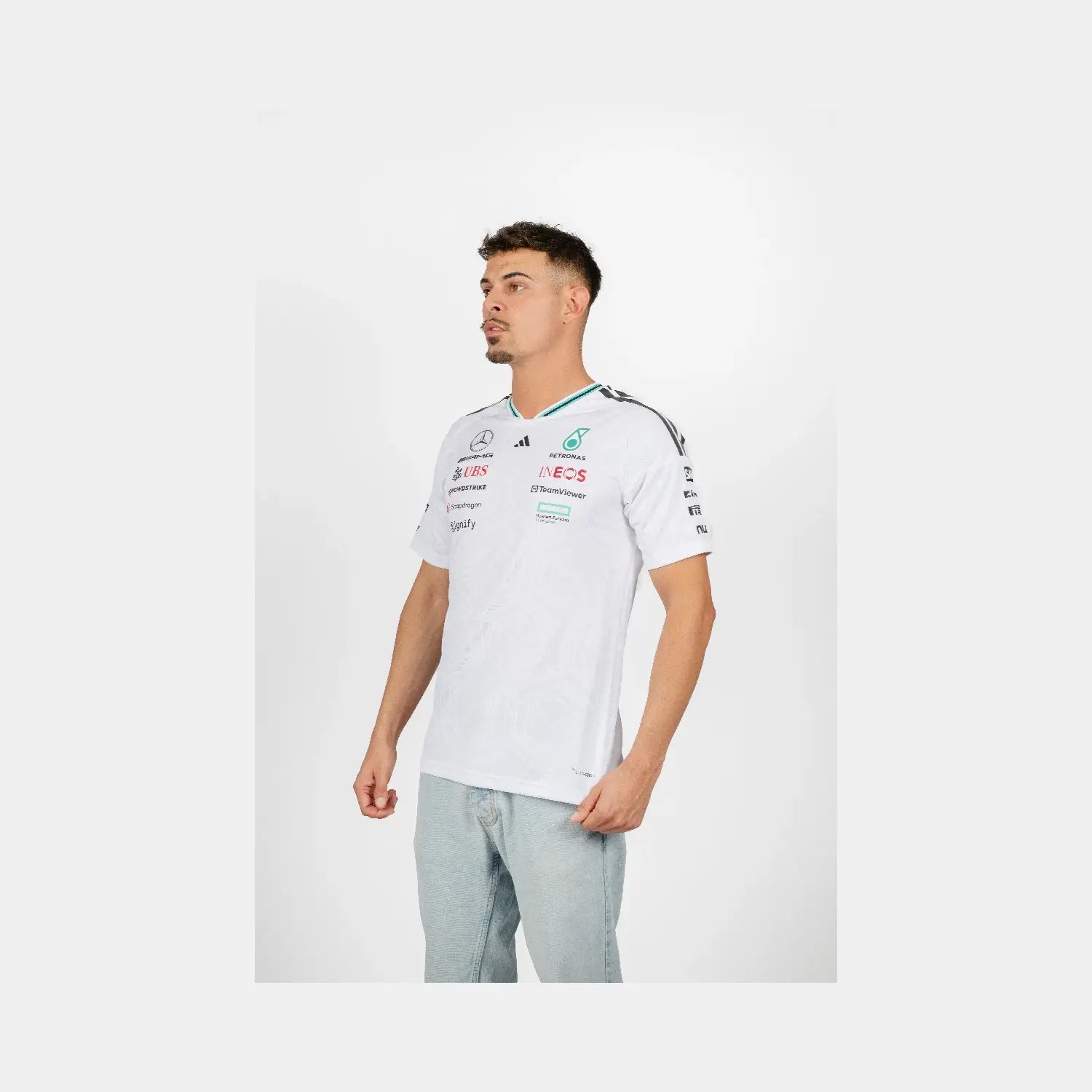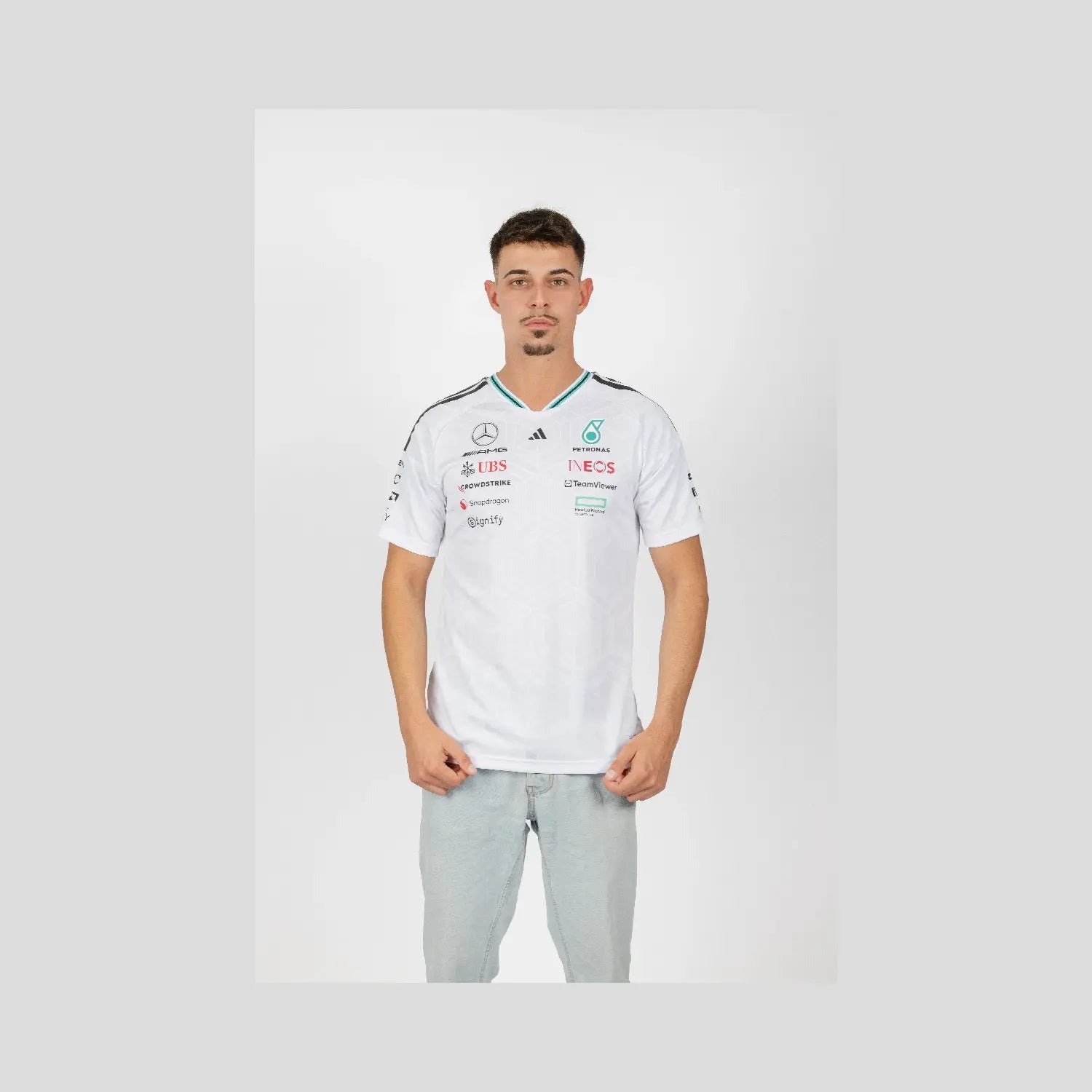 Eleva tu vestuario activo con la polo Mercedes Mez csapat de Adidas, diseñada tanto para el rendimiento como para el estilo. Hecha de 100% material PET reciclado, esta camiseta ecológica garantiza comodidad y transpirabilidad durante cualquier deporte. Su elegante diseño blanco presenta la icónica marca Mercedes, lo que la convierte en una elección perfecta para aficionados y atletas por igual.